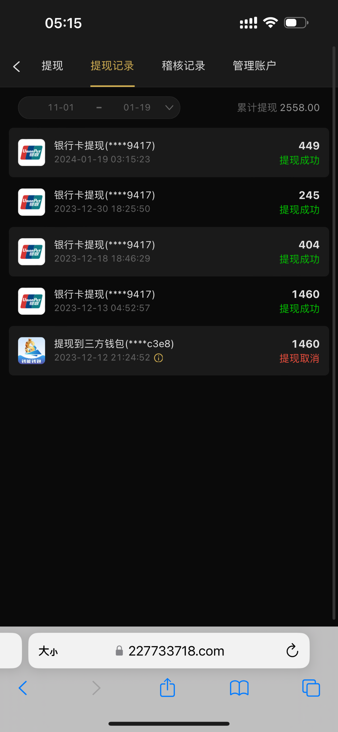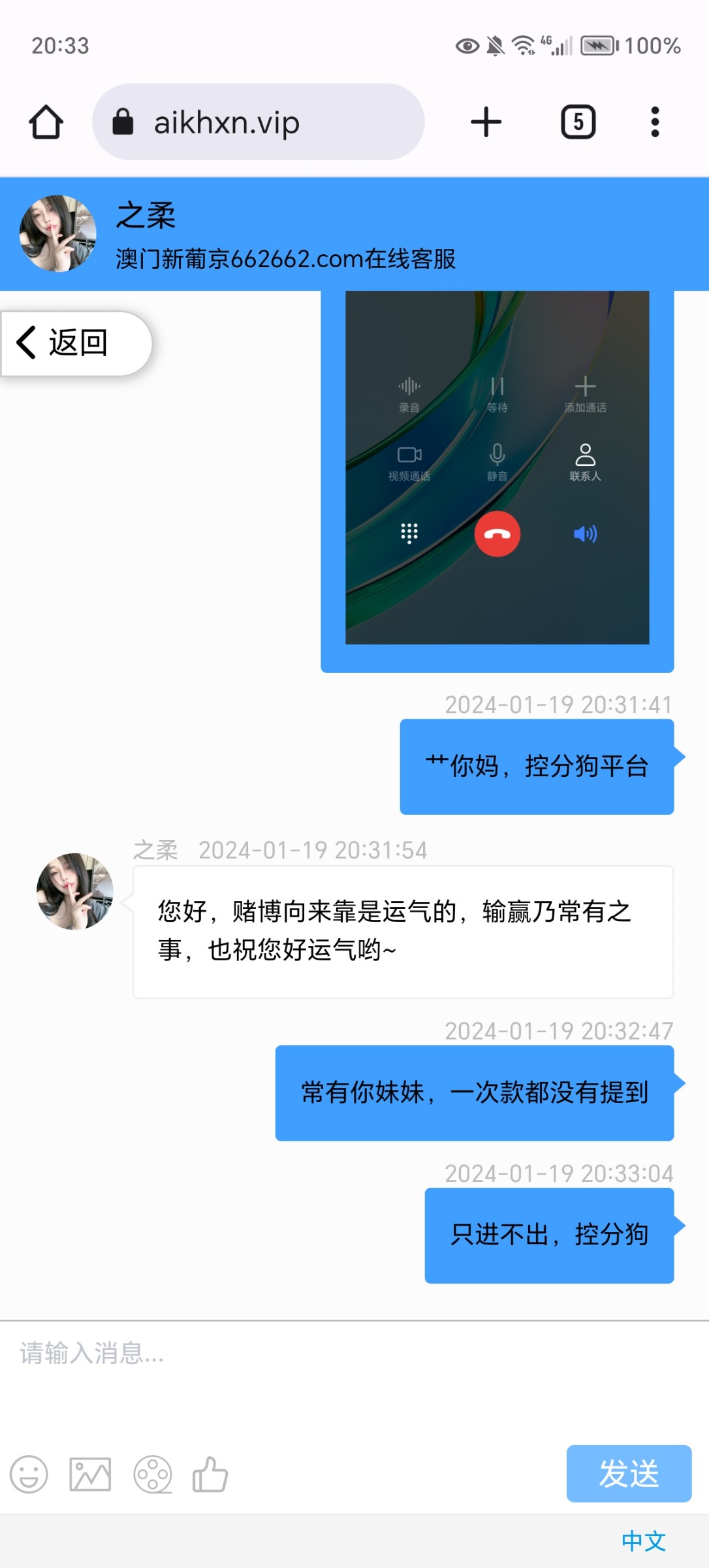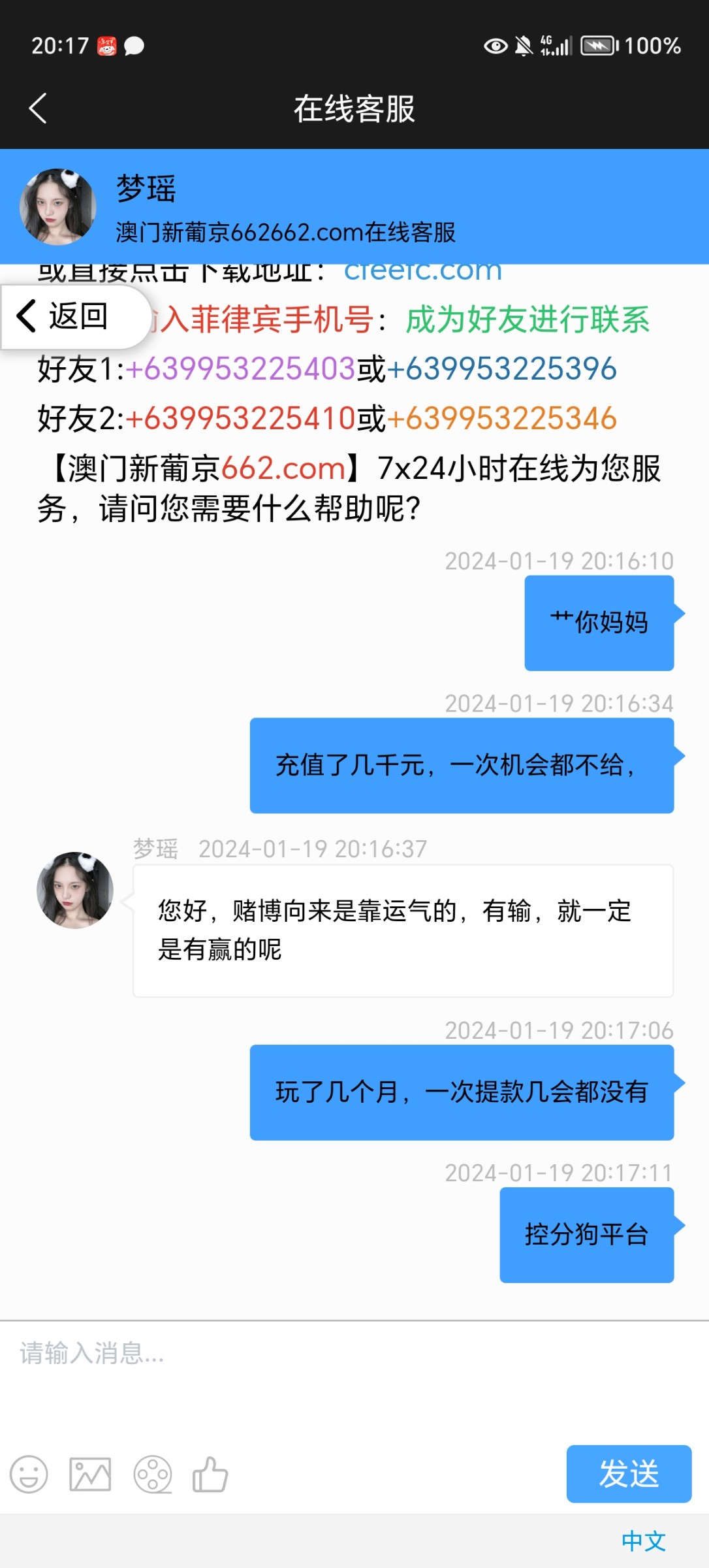去年4/5月份注册的,玩到11月份左右充值了3000左右。提出来不到一千,前几天打电话送了58,提了一百没给出就没管了。今天一看直接都封号了,真的黑