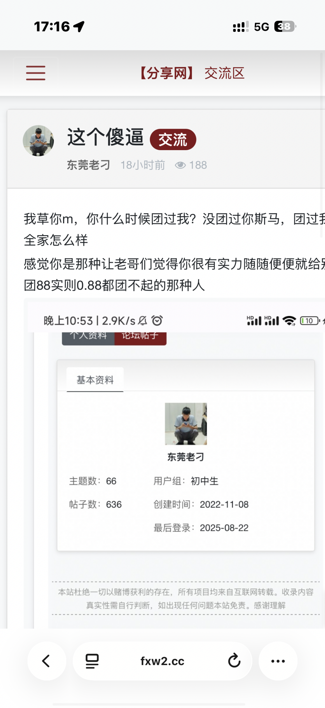 狗庄拿命来: 我也觉得奇怪,论坛这些杂碎88没几个有格局的,还团你88笑死,除非认识的,宁愿输死也拔毛的,88怎么可能,猪脚饭都是奢望。。。