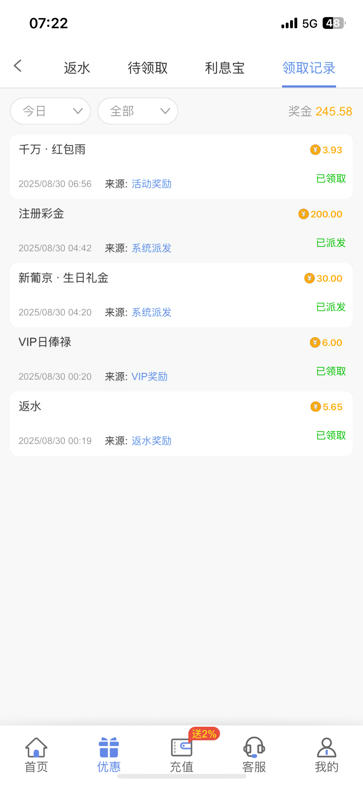 2018站内信彩金,充值送