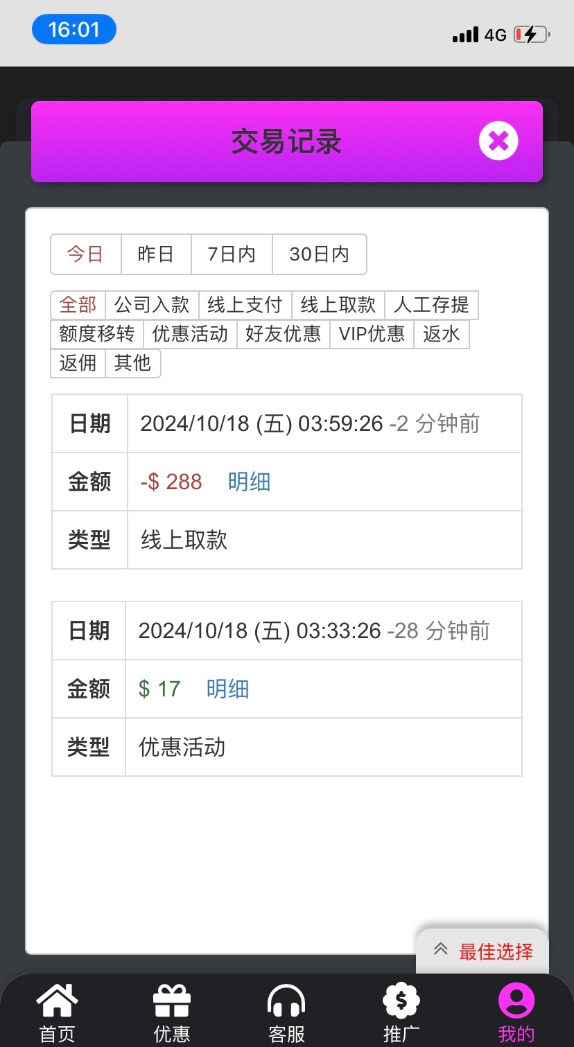 773有格局我都有五个账号了 昨天又来了一个特邀36打到了五百多没提现怕黑了 早上又玩了女王1.8免费五次直接爆八百多 没有银行卡 刚去办一张银行卡 提现让我发一条短信 后秒到账 还以为会黑了一直不敢提 格局大