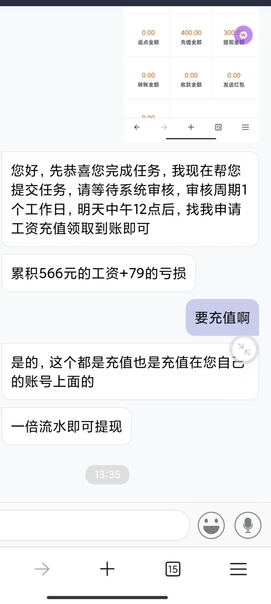 打的特邀电话 说打够500的流水就有500的流水工资 中途提现过一次300到账很快 剩下的500能不能充值呢