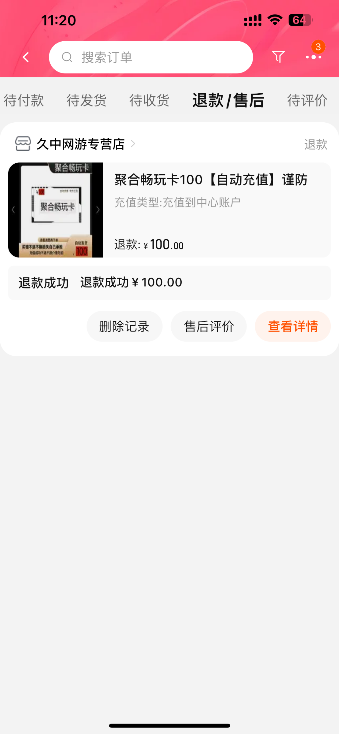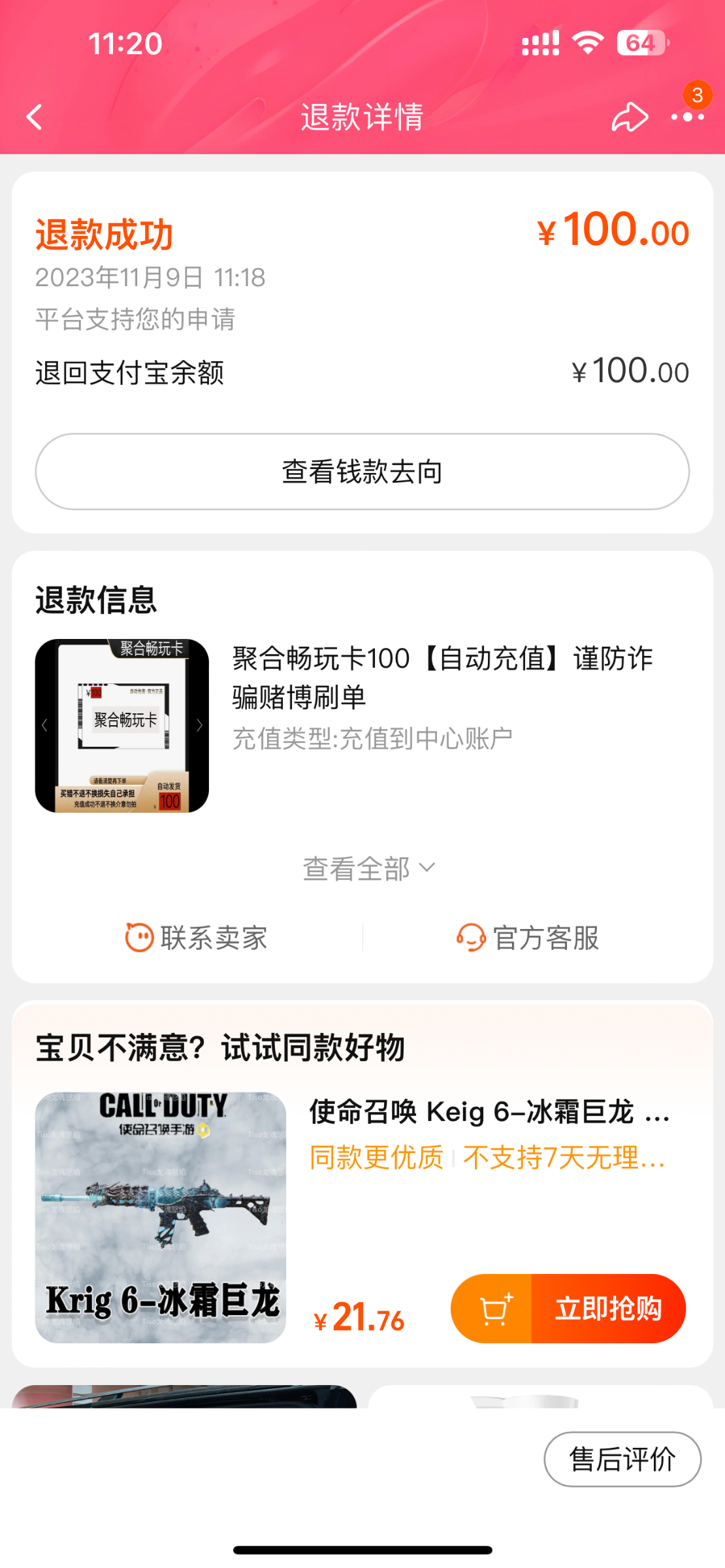 关于淘宝卡退款问题