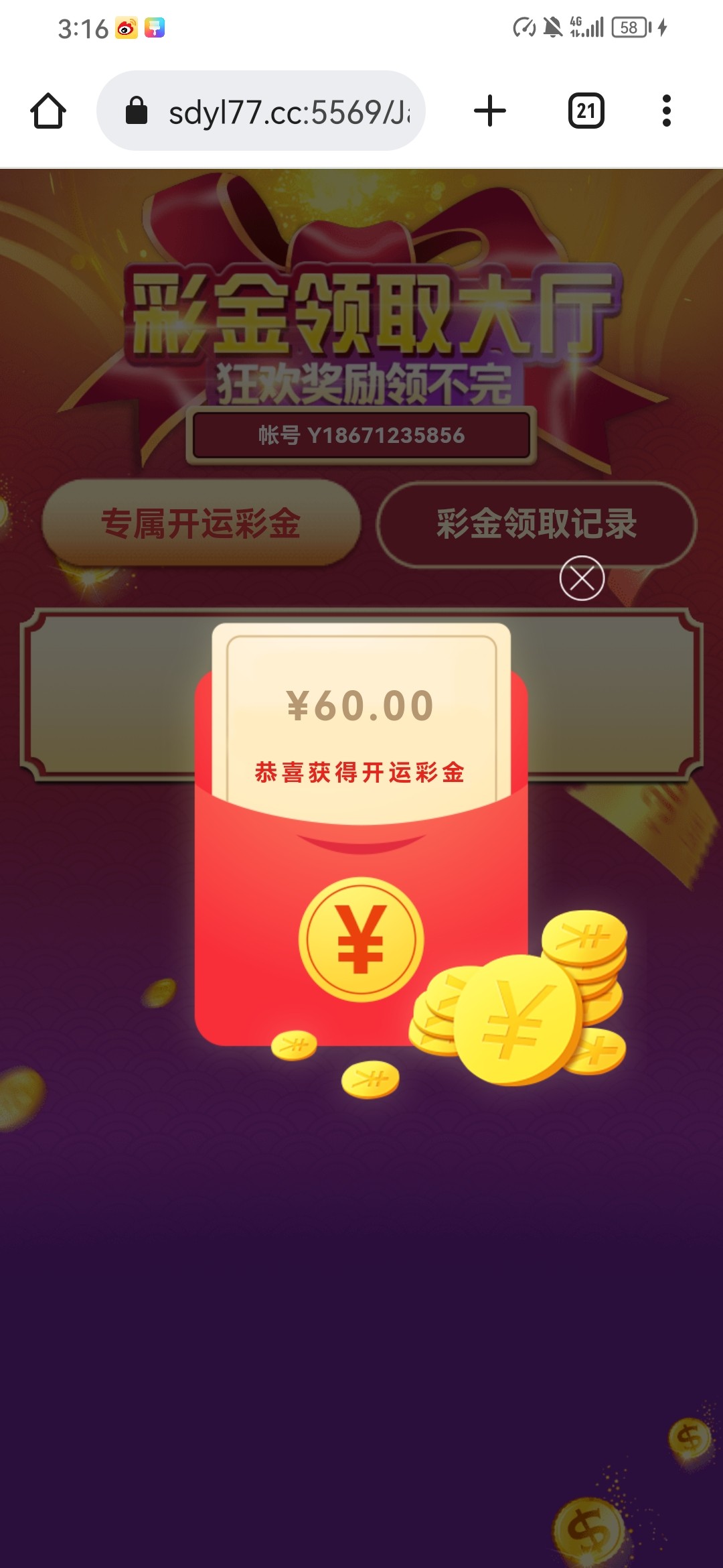 送60块钱输没了