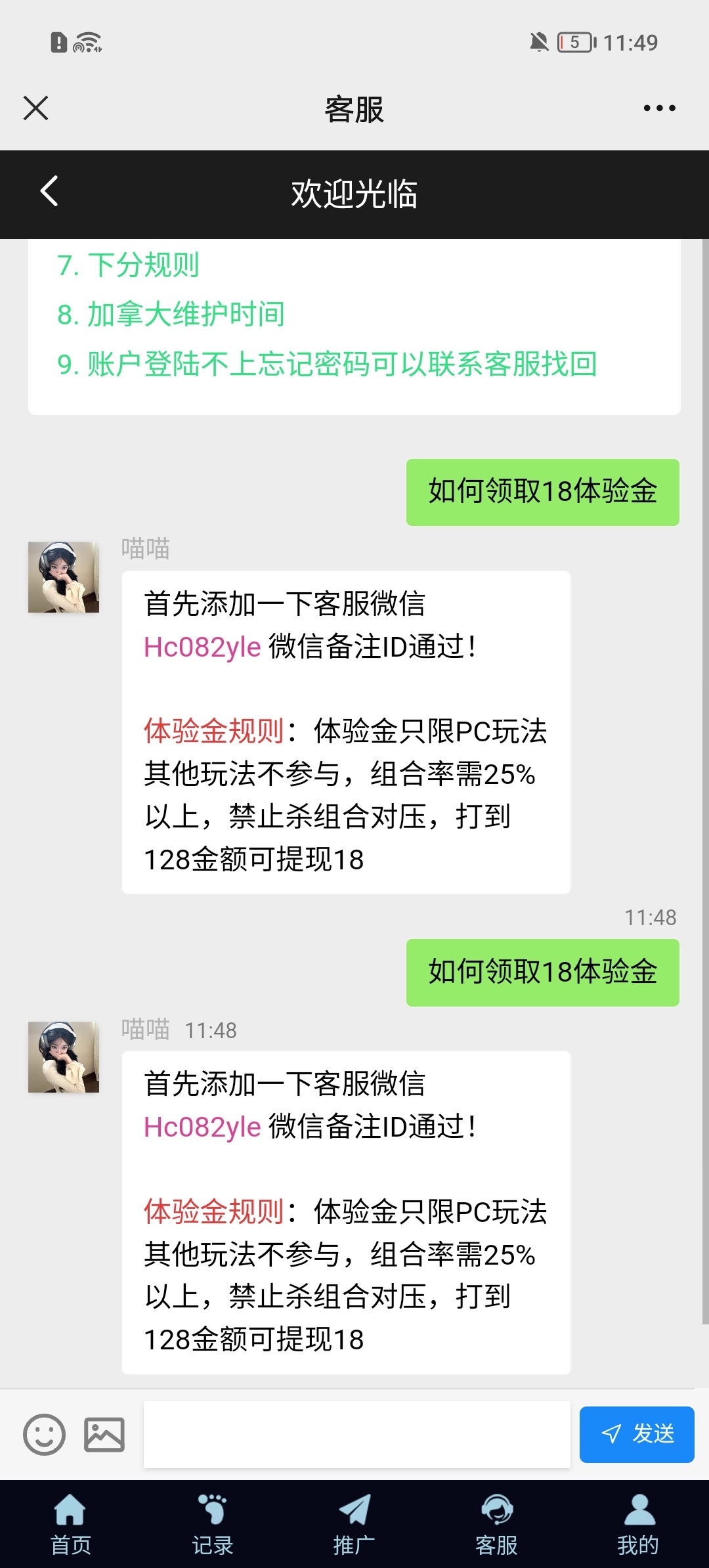 微信扫码领取18体验金打到128下分18现金