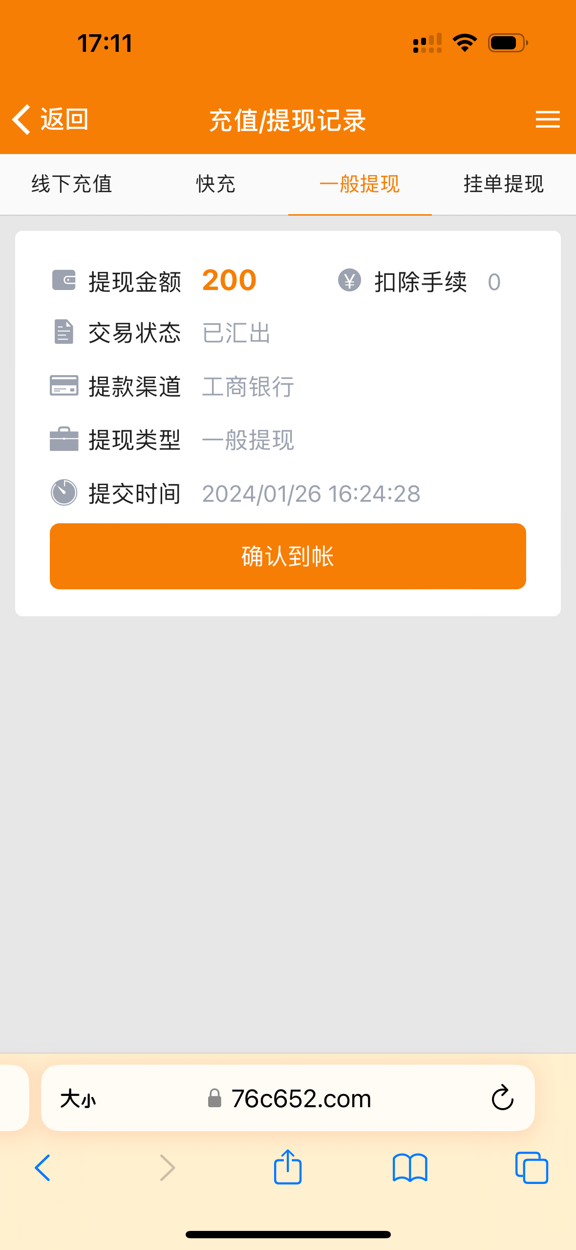 到账了
