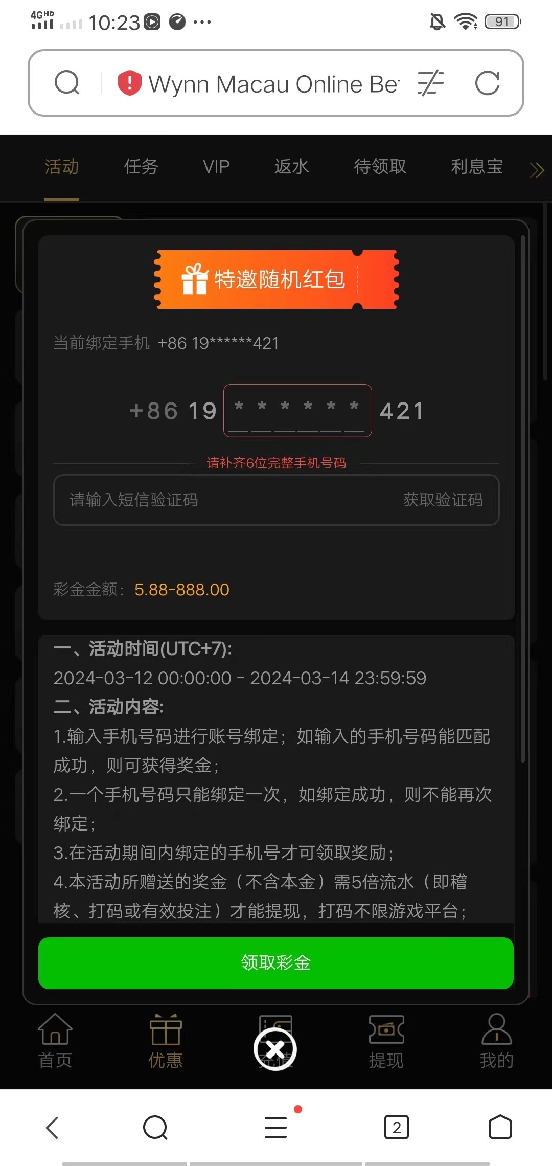 点击领取,说手机号不存在,去他妈的