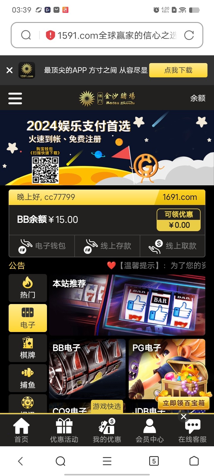 我就是2月底发短信领了15,打到334出了,又用334以小博大打新葡京1139打到2000,又用2000打了2次1000+388上到8000,然后又给爆了1.1w,提款了,余额1.8w,买个电脑花了1w,现在还我7q。这个月红的开始就是这15块钱