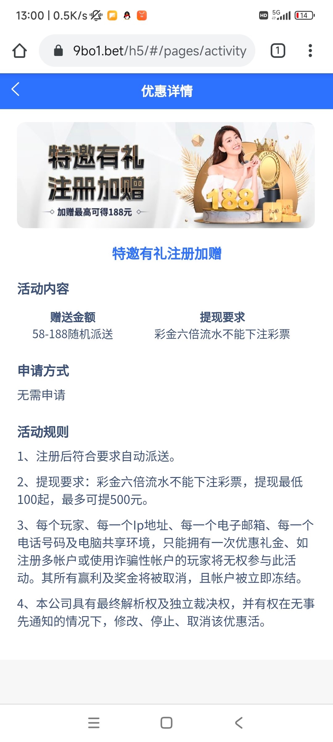 特邀手机号注册秒送58/100~500出,6水,不能彩票,没有的无视