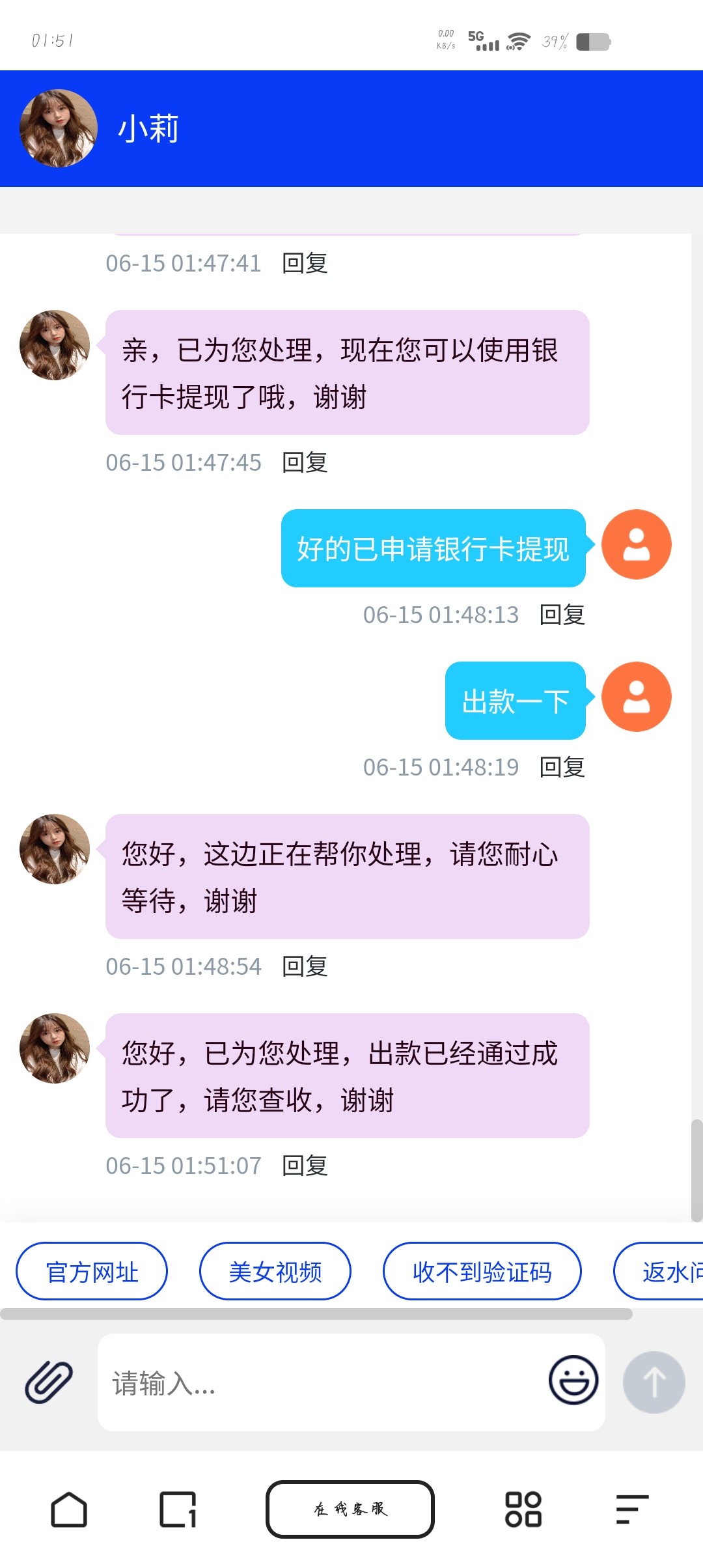 我直接说我黑名单,然后让我提卡就到了