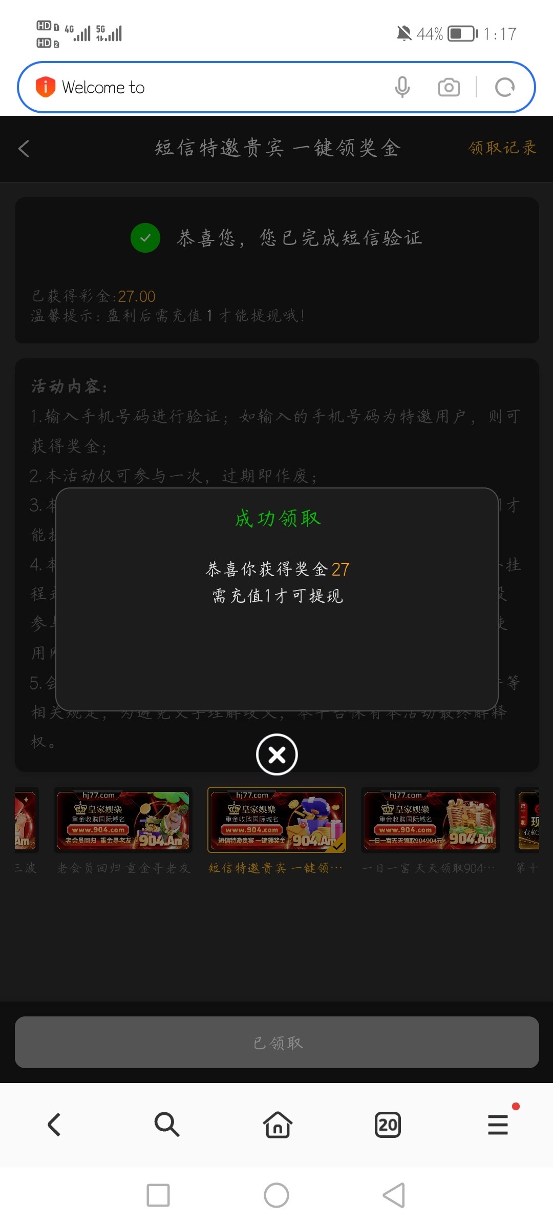 注册优惠里面自助申请彩金,手机号在特邀名单内的秒送,