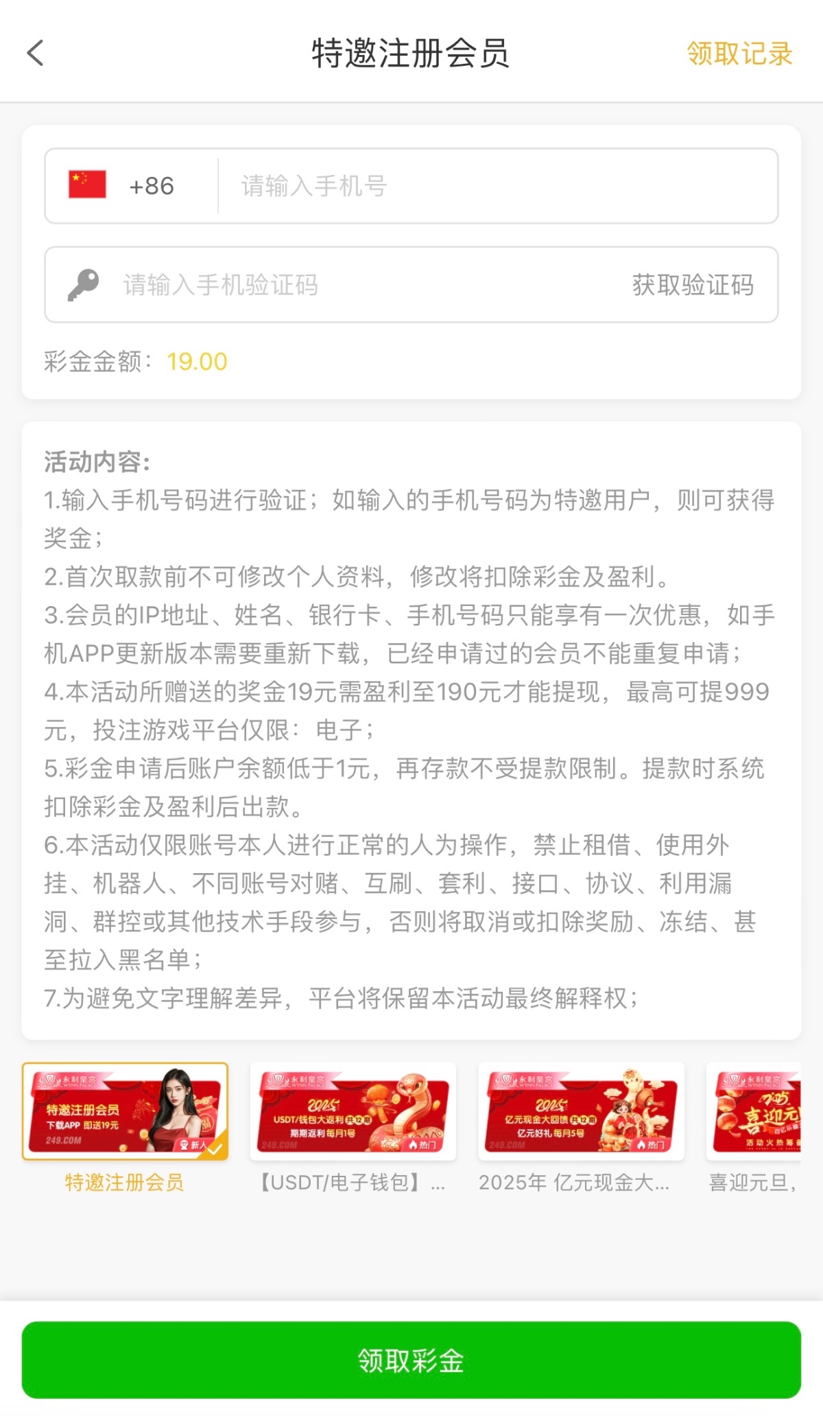 新用户注册优惠里自助申请秒19/190提现 特邀碰瓷
