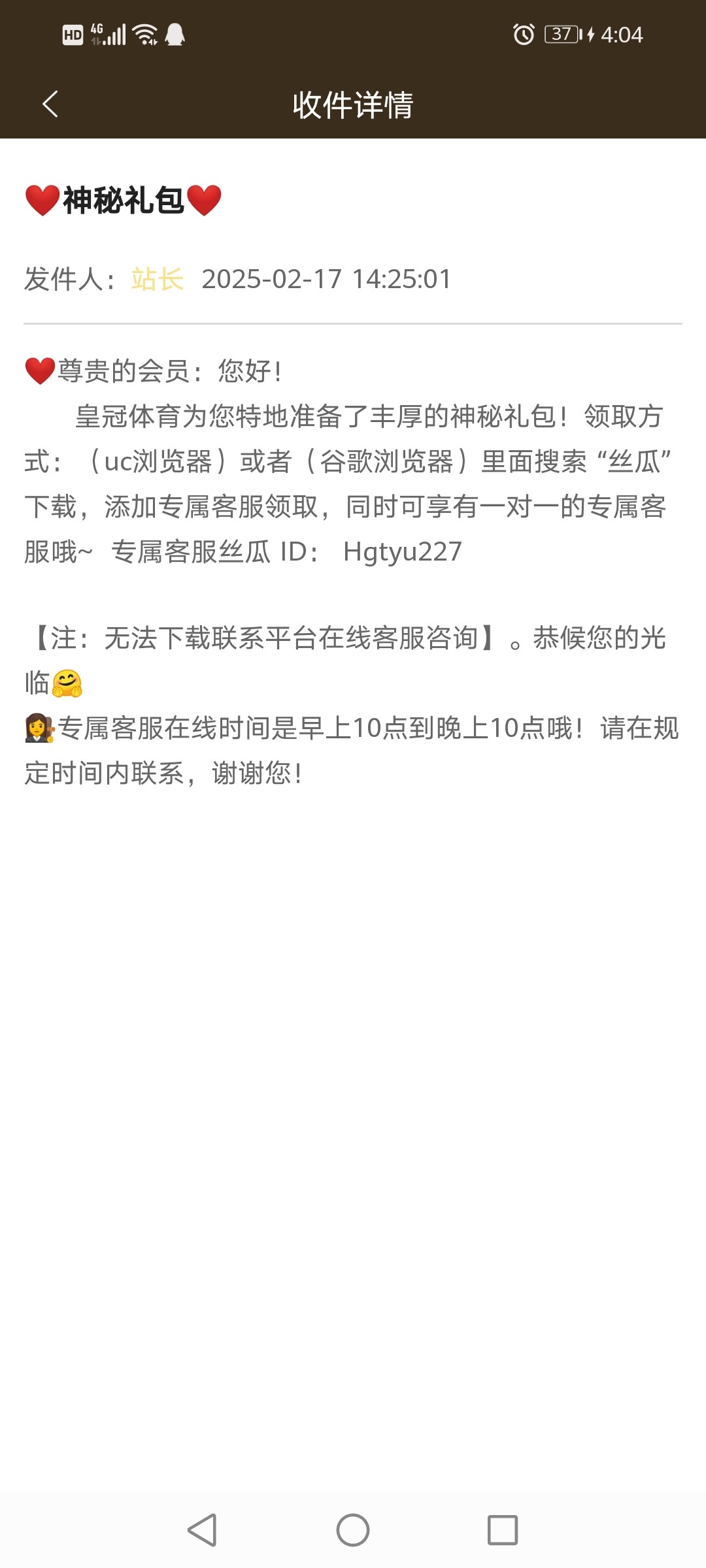 有号的看看站内信有没有这条信息,加丝瓜领取神秘彩金,我领了57!