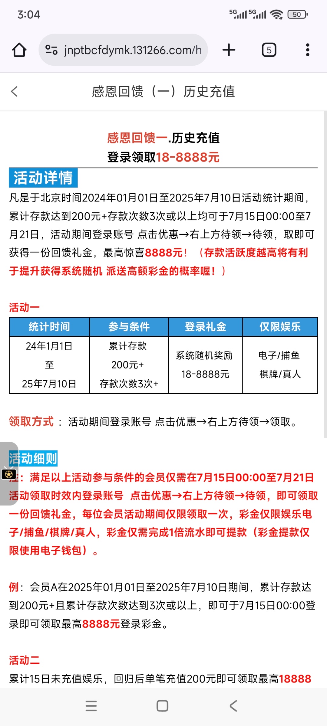 历史充值200+存款次数3次+7月15日开放领取链接:3016.com链接:8022.com
