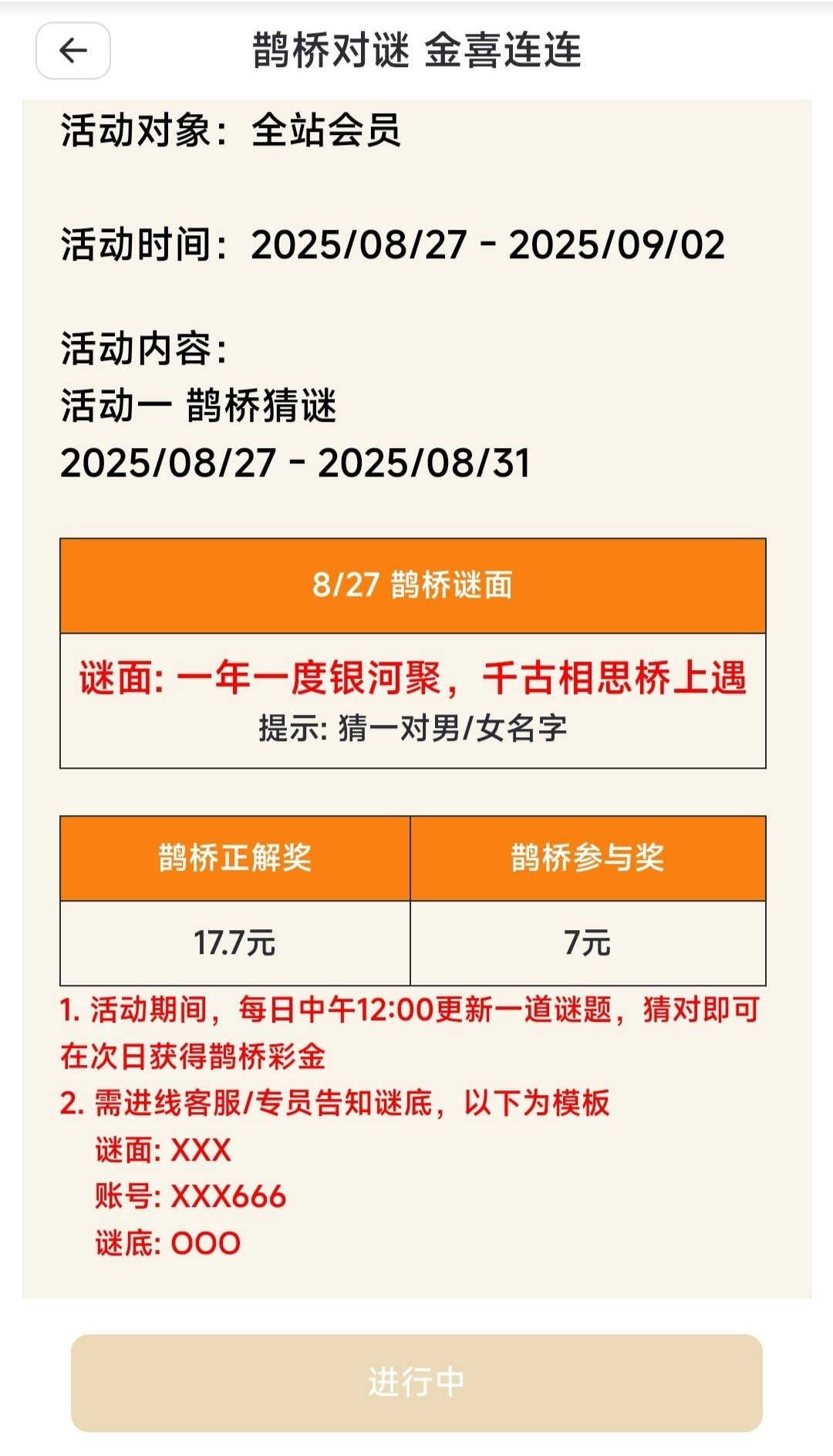 七夕猜谜猜对有17.7,猜错也有7,这台不要充值是半黑白嫖就好,只做分享,出款自测。