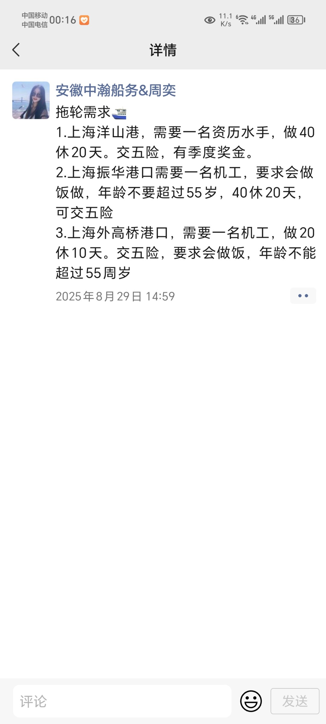 有没有陆地没出路的,想谋个稳定工作的,航运业欢迎你
