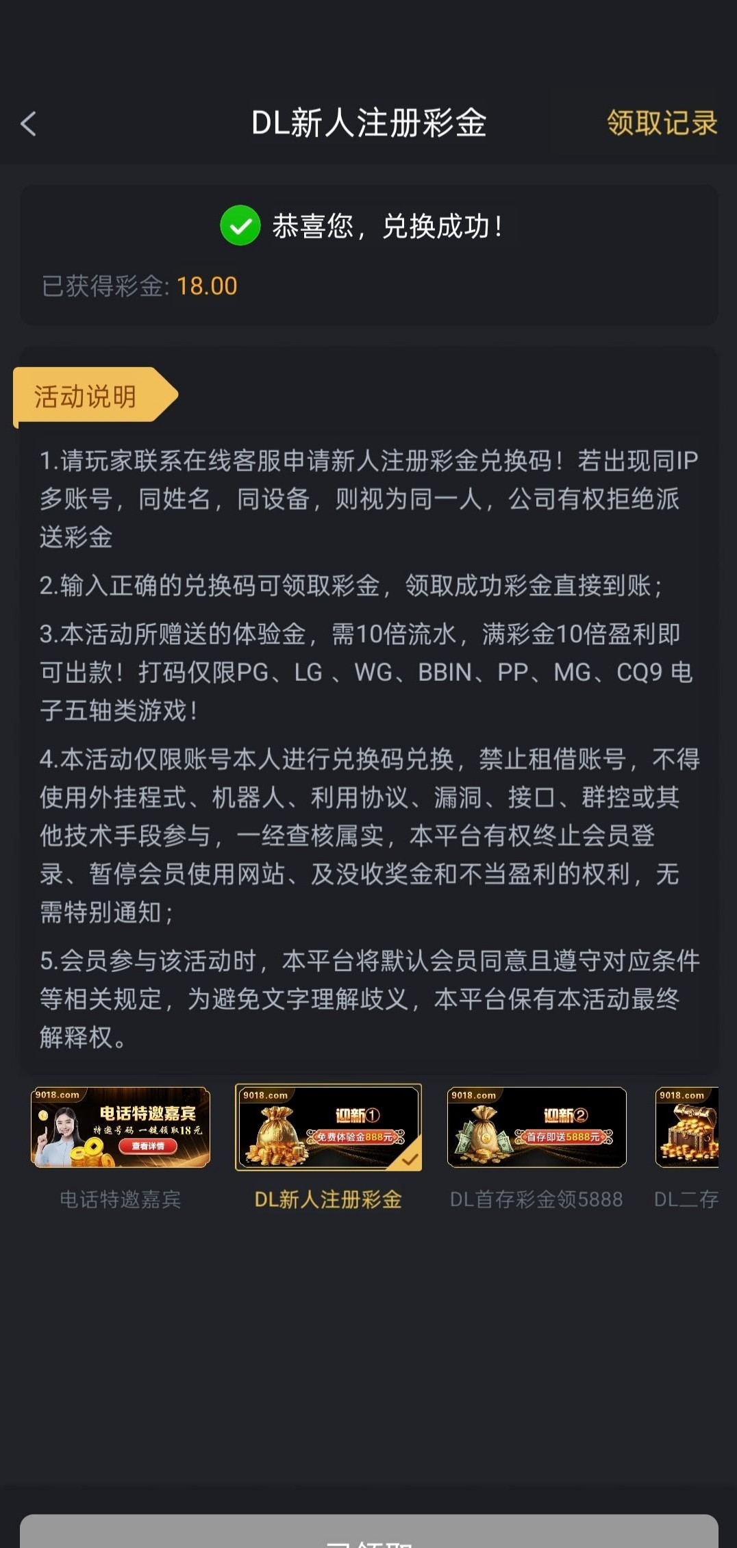 活动不在了,现在是电话特邀彩金