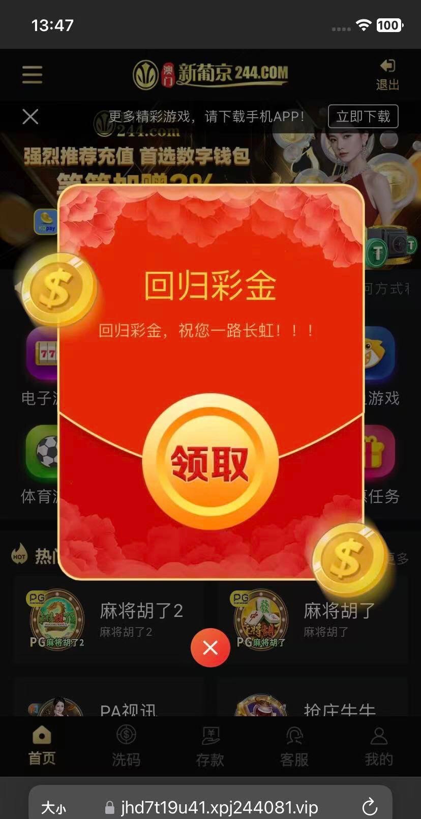 电话回归彩金今天又来了 有号的老哥上去看看 网址244.com