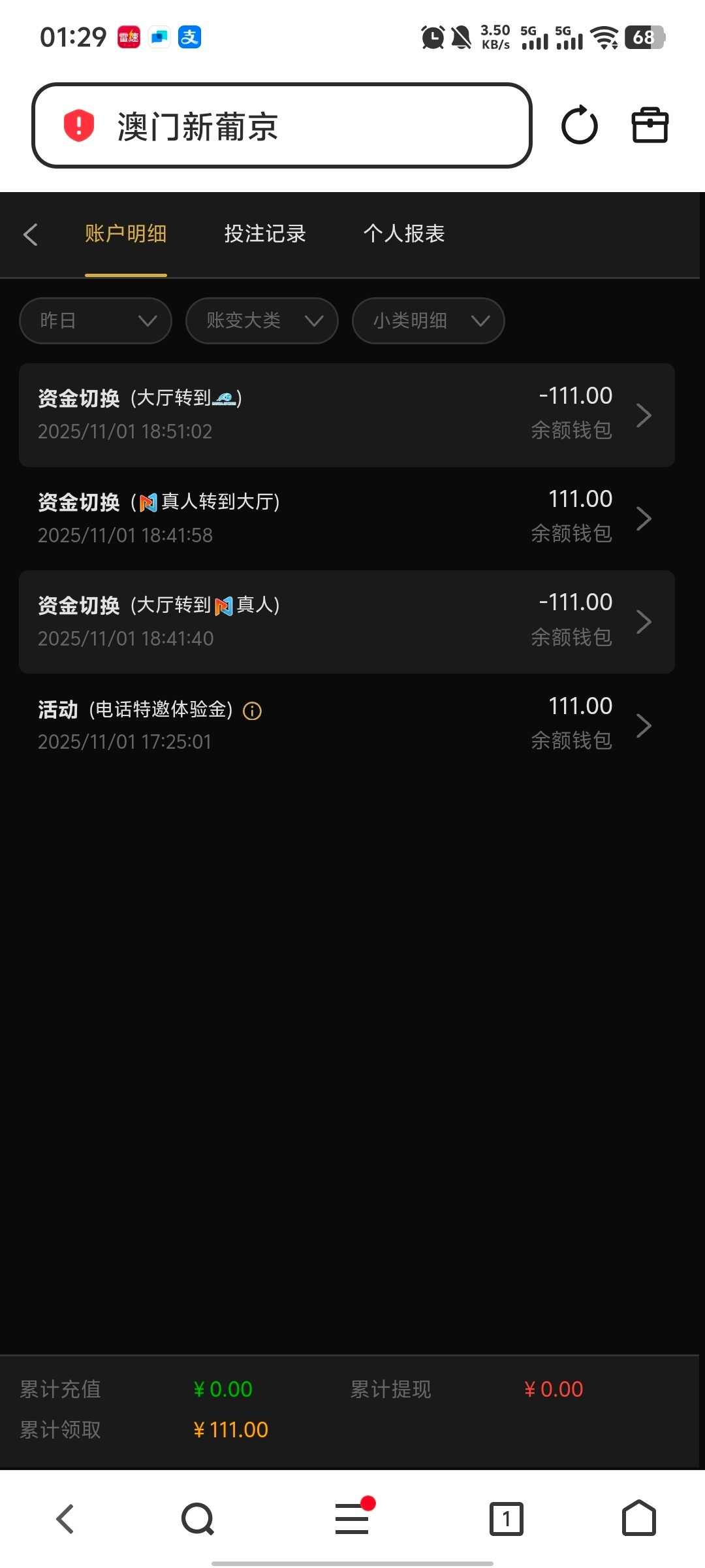 我是1号晚上6点多接到的电话,你们要是没有接到电话可以去碰瓷。我没有打出来送了111,我玩体育的,客服说一倍流水出款。