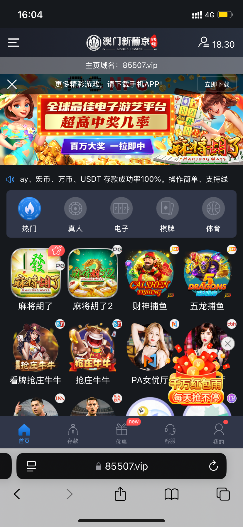 85507.vip 有号的上去看看 我是接到的电话,电话里说有彩金,让我上号看,登陆上去看了有18