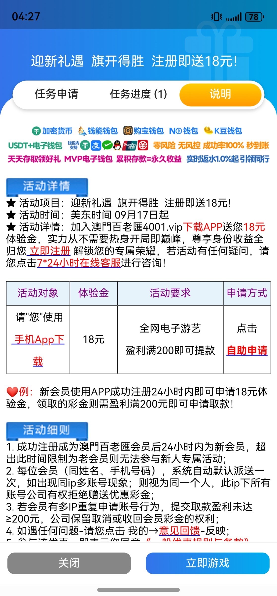 注册下载后优惠活动申请18,出款自测,严禁充值