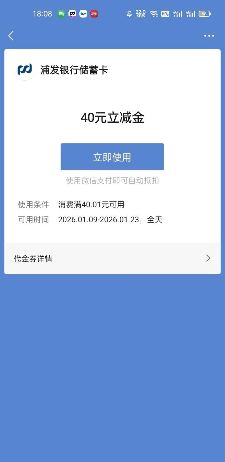 #小程序://浦惠来了/C2wZ6KfXheaXeQs 复制到微信发送出去打开 绑定自己的企业后退出去再重点一遍小程序界面选择 领取立减金,下载浦发银行开一个电子户绑到微信上 用开的时候绑的卡往电子户充值0.01,小程序搜索闪动充值40.01实付0.01再提现秒到