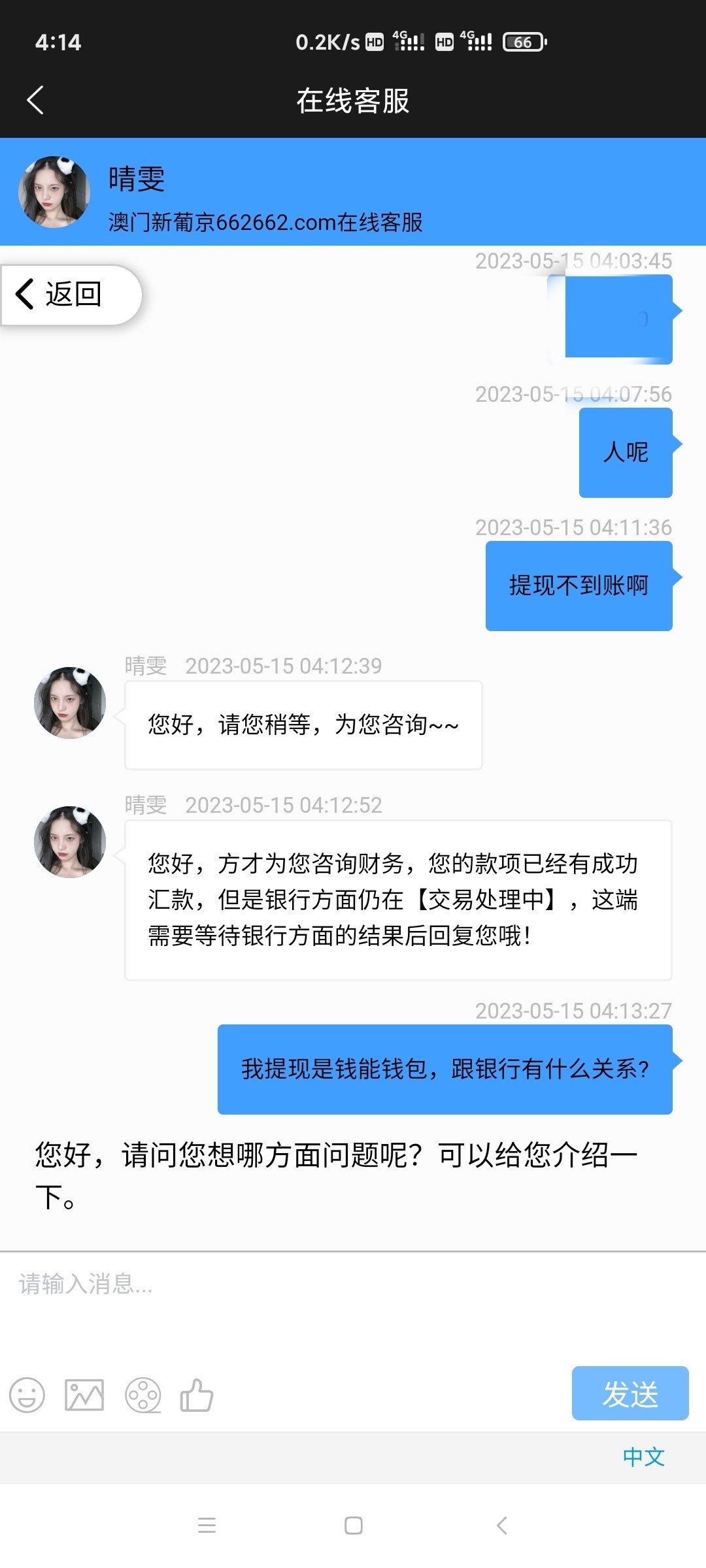 正常我被空汇360虚拟币 找客服就是一直查询中 过去一段时间问还是查询中 跟傻逼一样的客服