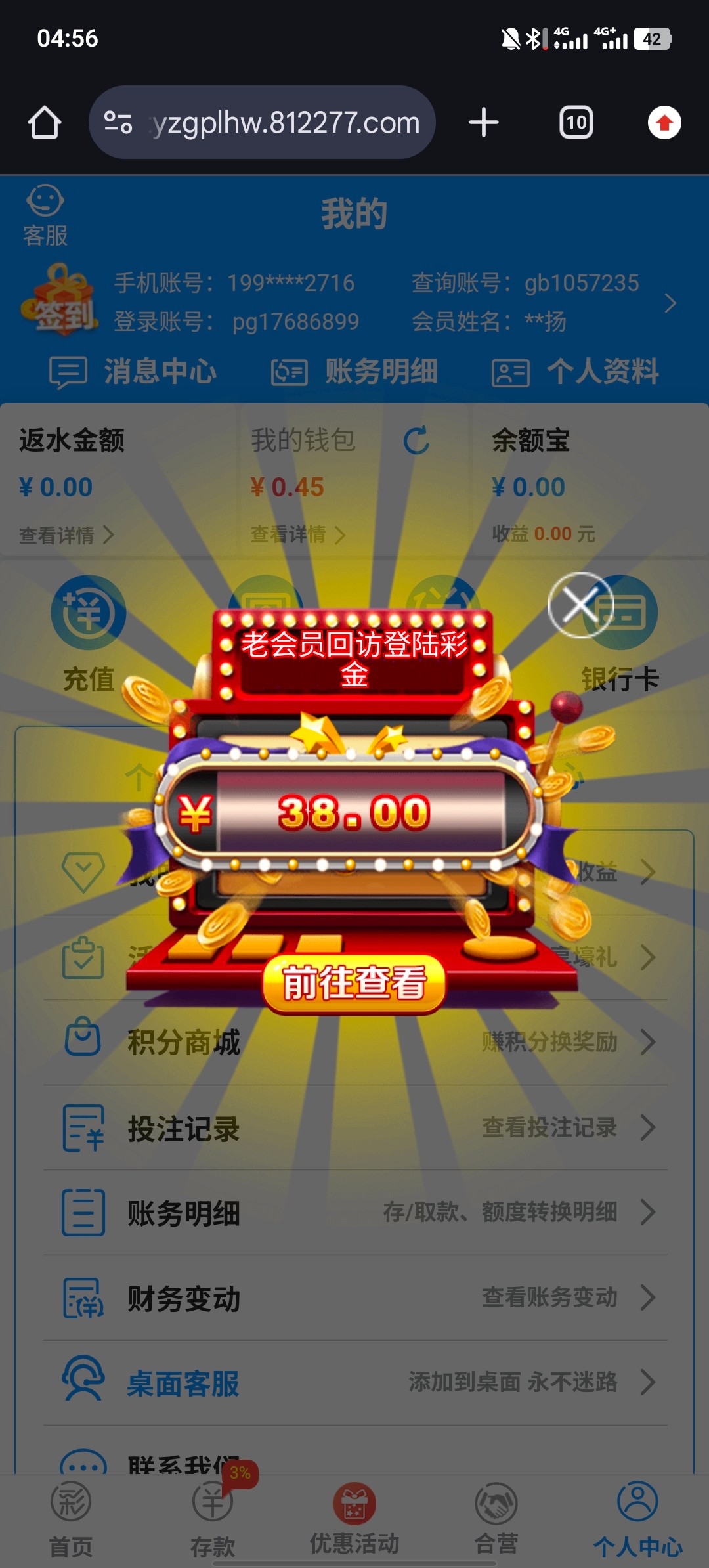 小篮板 9023登录账号查看是否有弹窗 我领了38彩金 没充值过的也可以登录看看