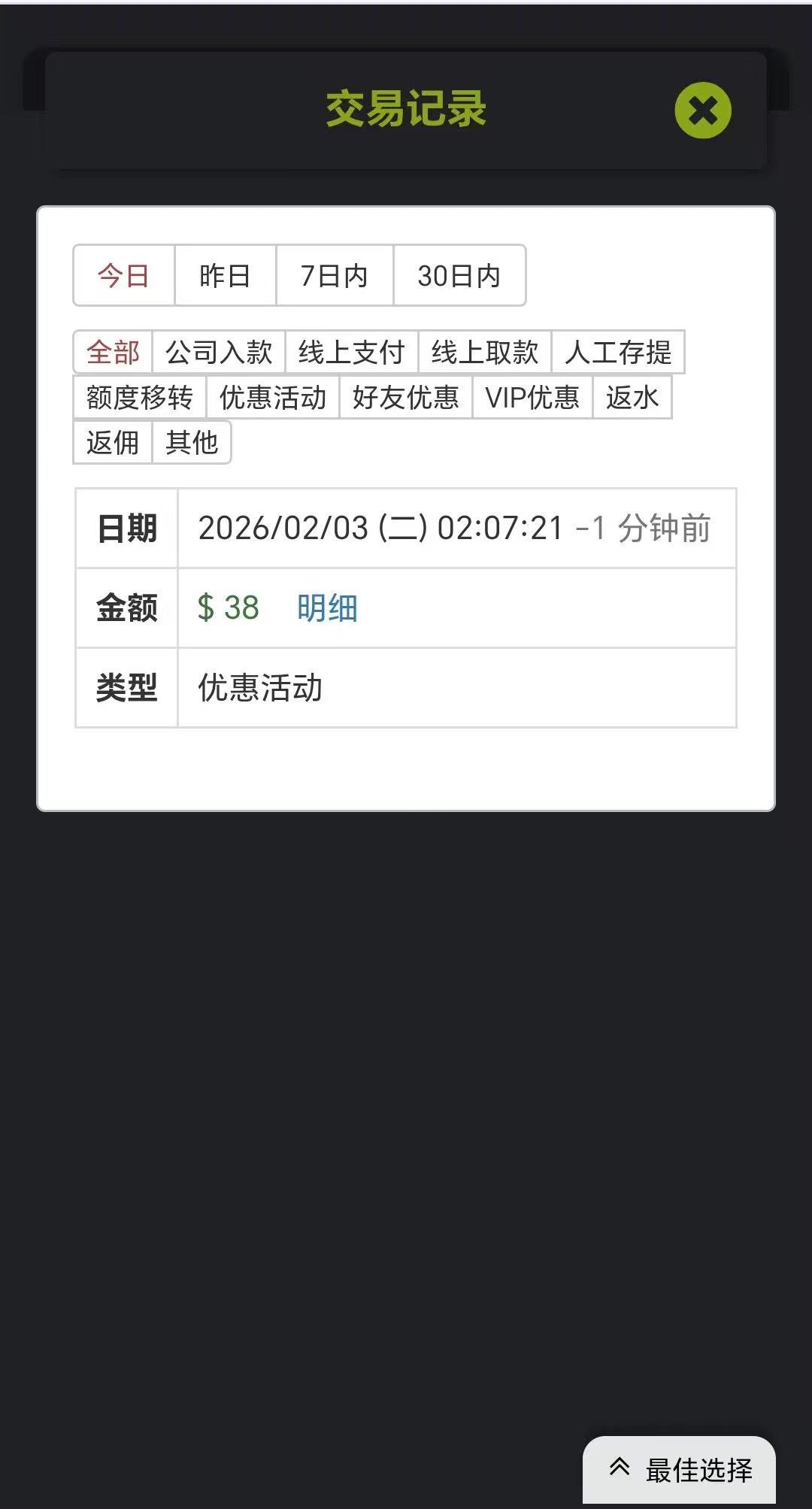出款情况:自测(