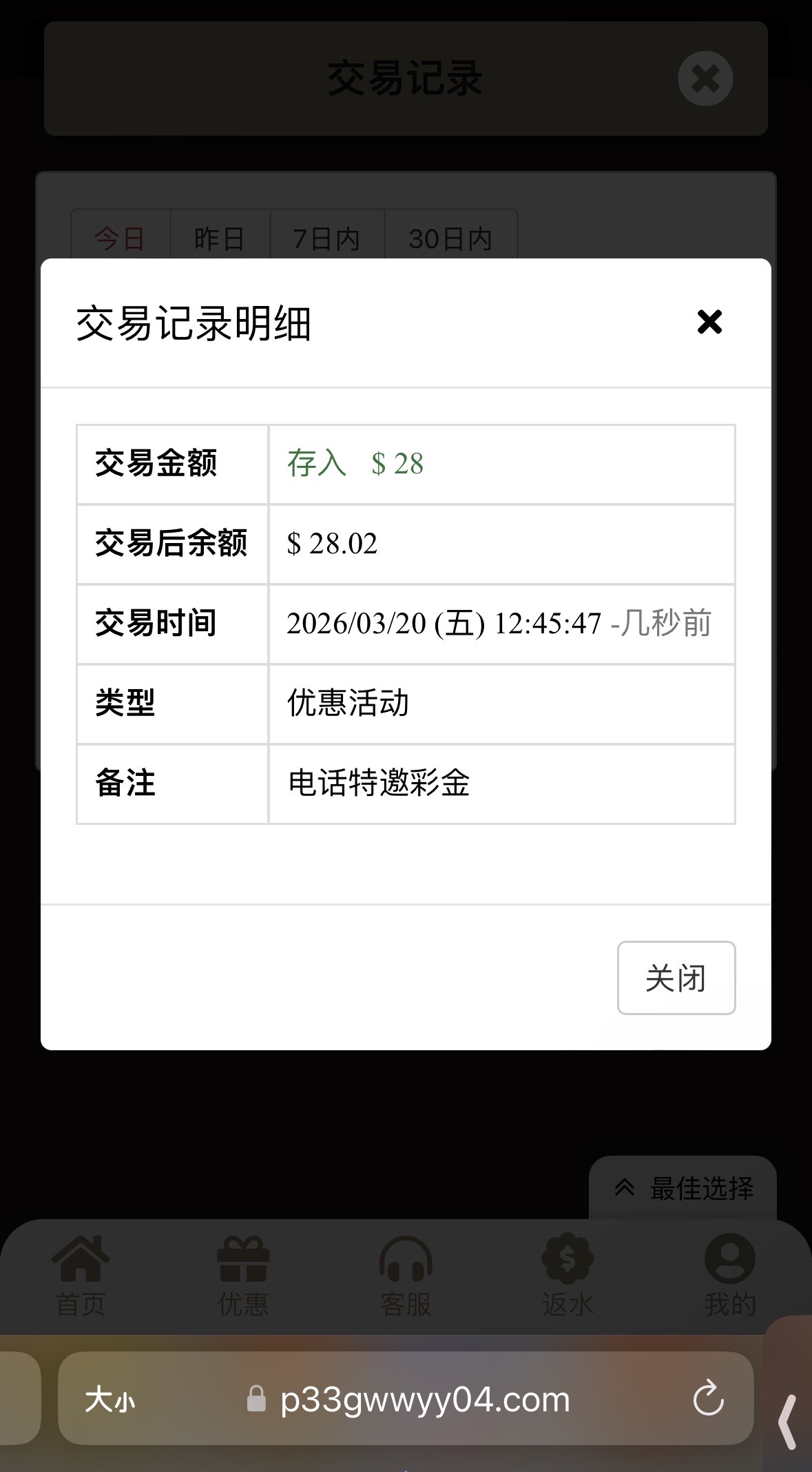 我是没接到电话的登陆上去有28 ,有漏接电话的去看看 历史充值100➕还有个马甲包彩金, 看看不吃亏,链接:81pg.com
