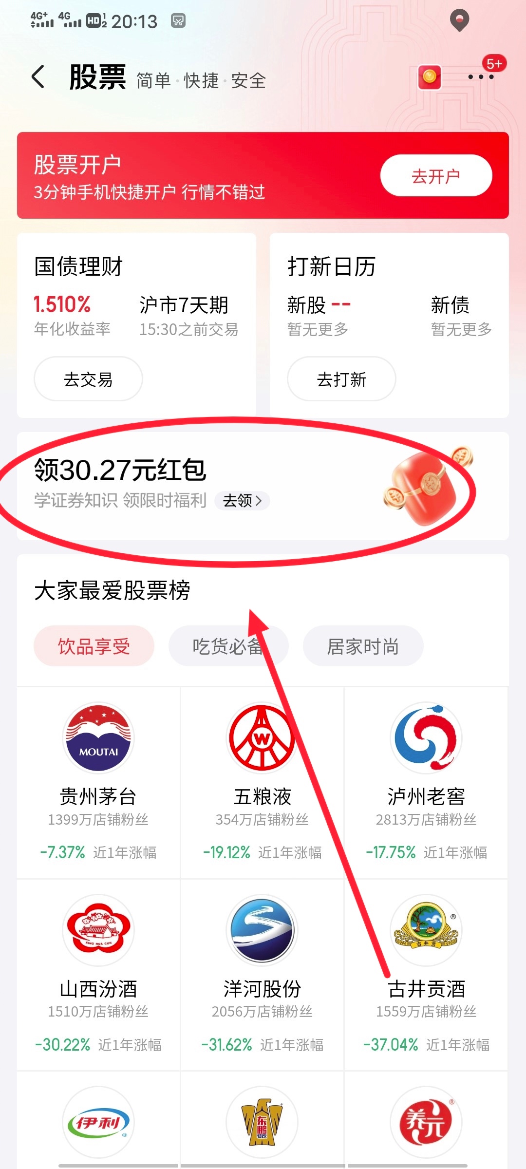 打开京东-我的–钱包-财富-股票