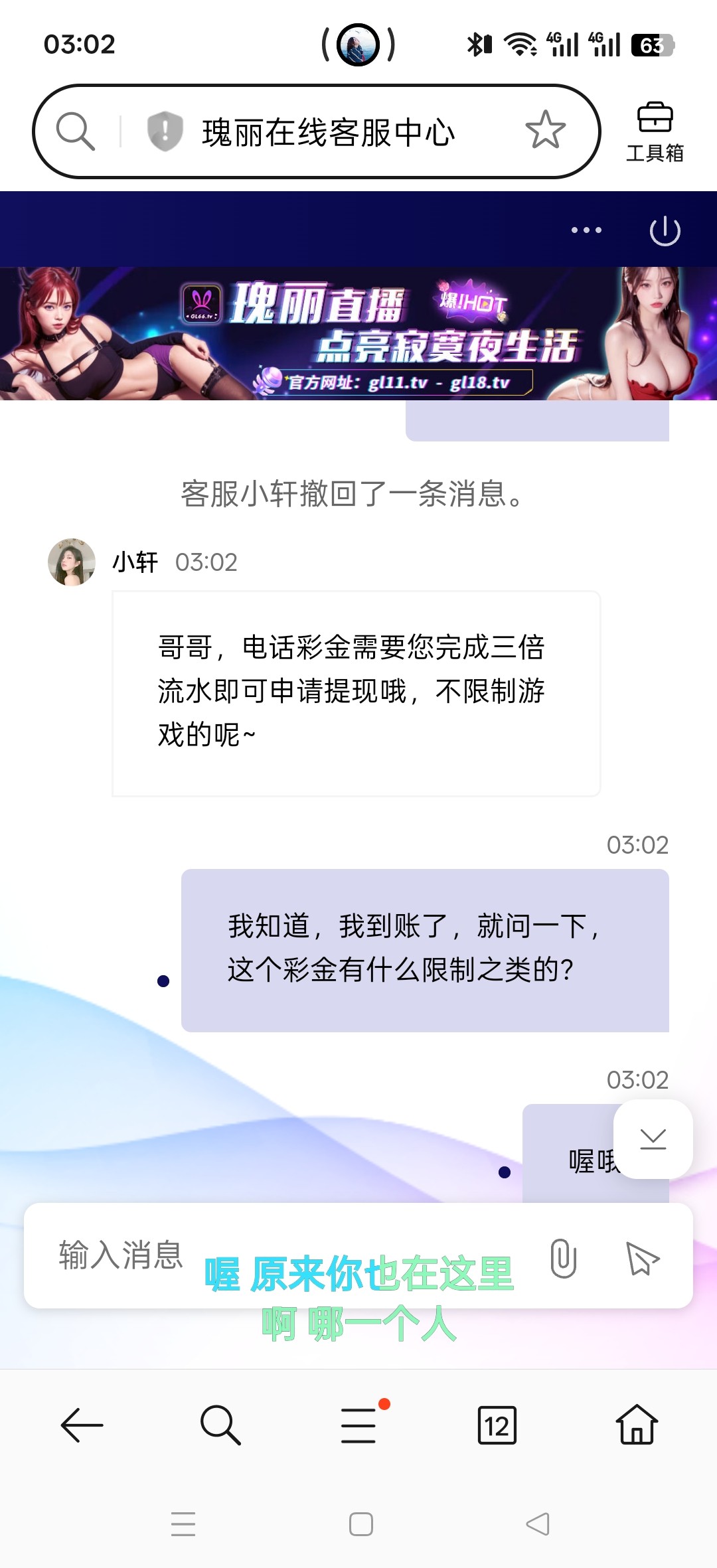 接到电话让注册联系客服,申请电话彩金,我是特邀,你们可以去碰瓷注册账号,银行卡随便输入姓名,肯定输入自己的,复制ID和手机号发送给客服,等待碰瓷到账就行!