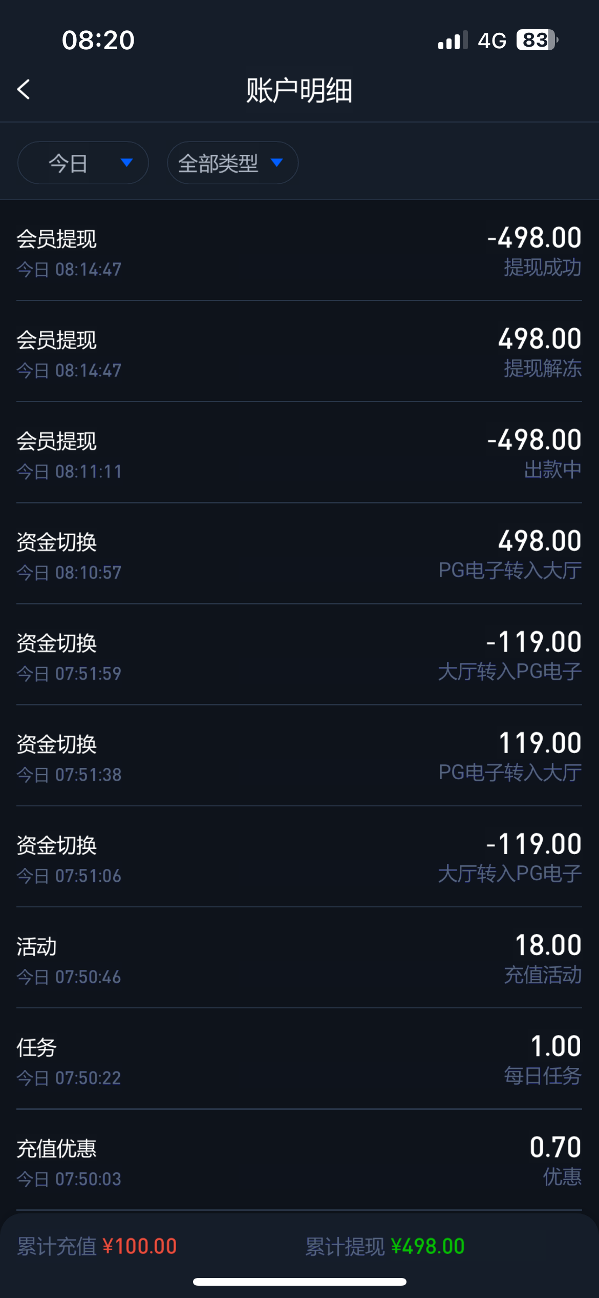 小暗 嫖了一千了 提581半天没到 提五百几分钟就到了 是不是提多了