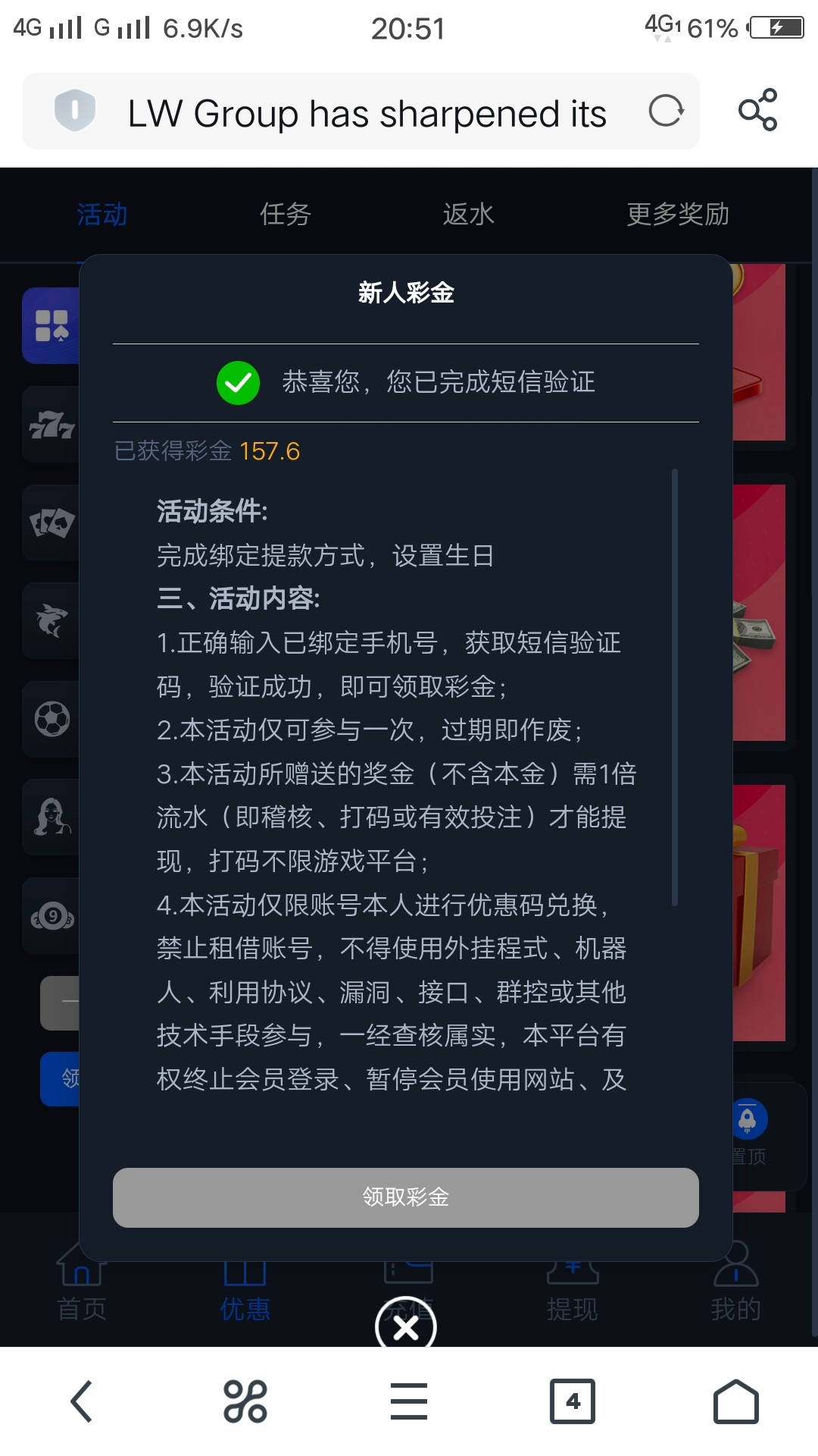 8-888,领到157.6,限设备只能领一个,不限游戏,一倍流水