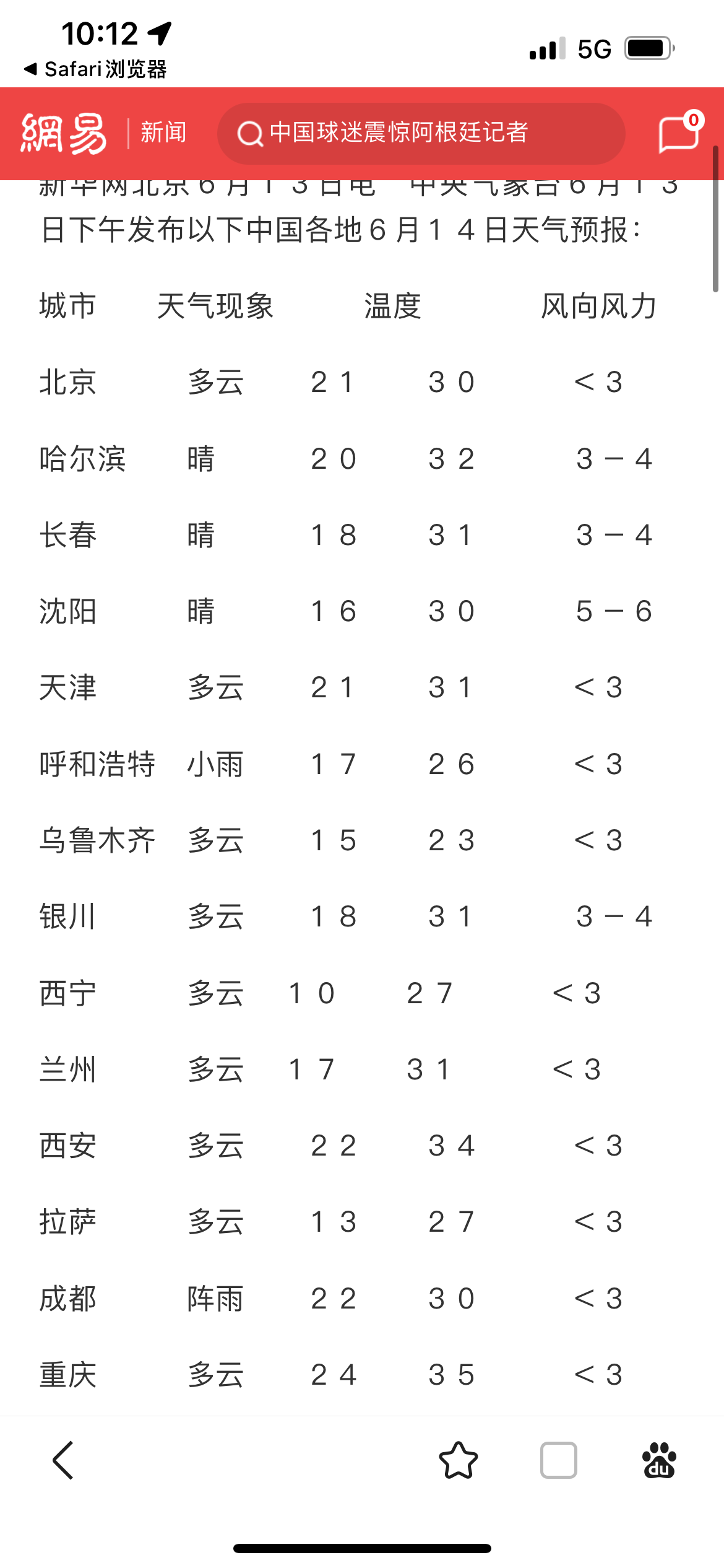 6月14号天气预报