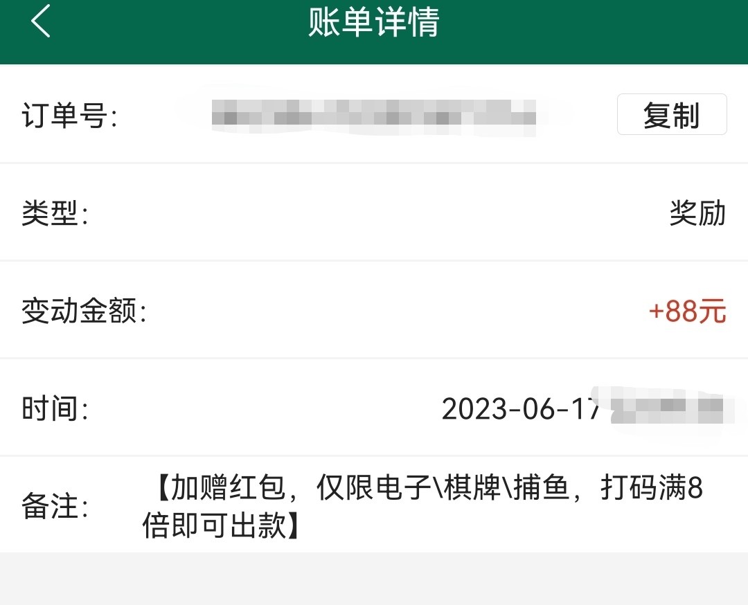 终于抢到了一次豹子红包,加赠88