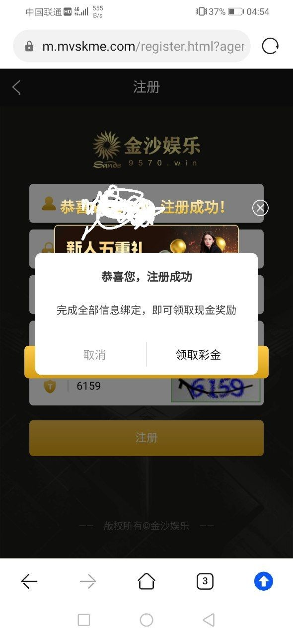 注册,然后等弹窗出来,点领取彩金去绑卡