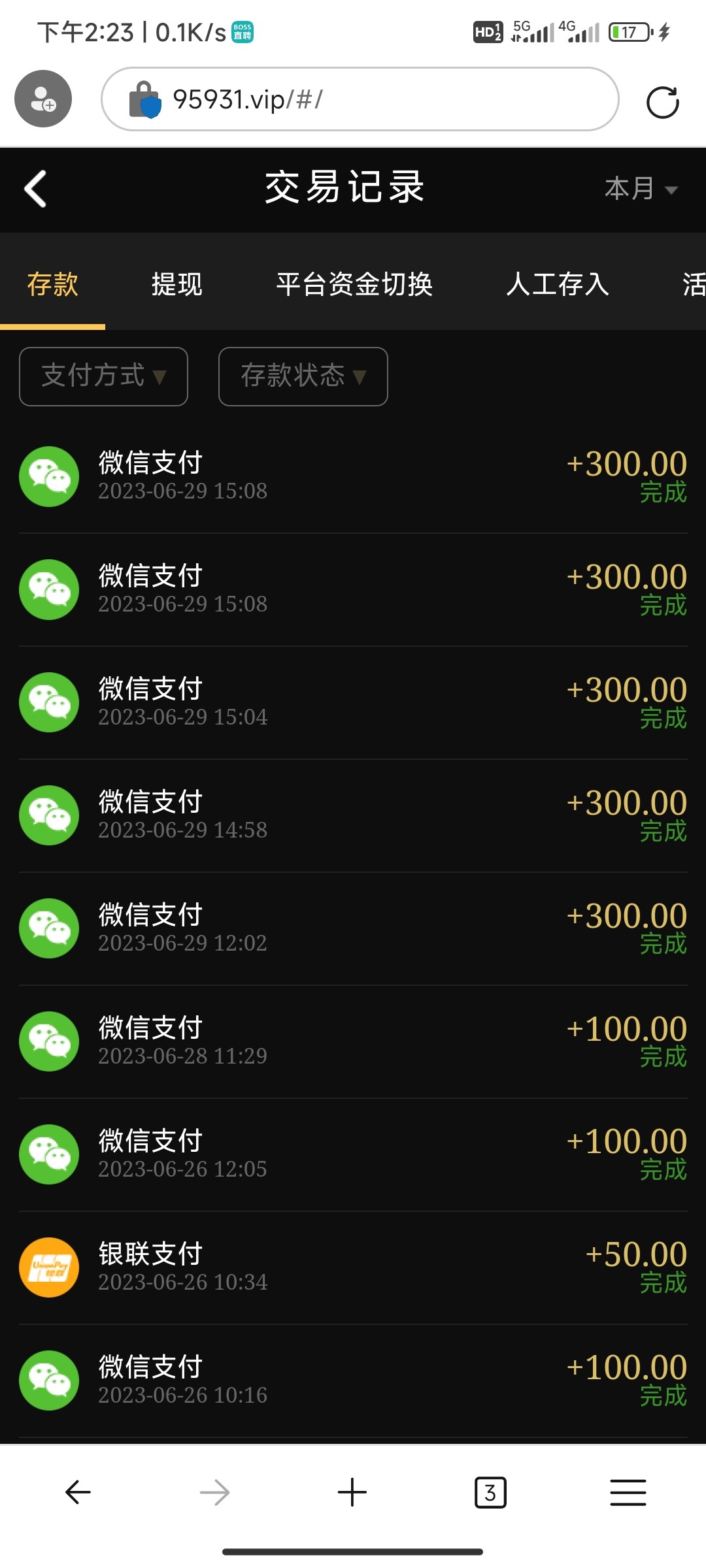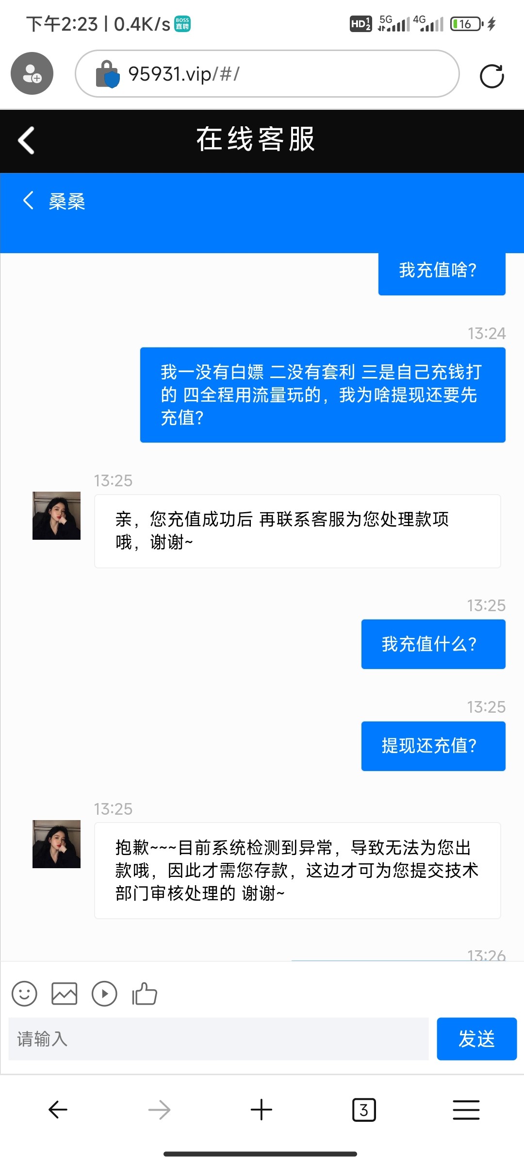 这个我被黑过,充几百赢到2000多就是像这样,让我充值同等金额,一直卡款也不给你取消订单