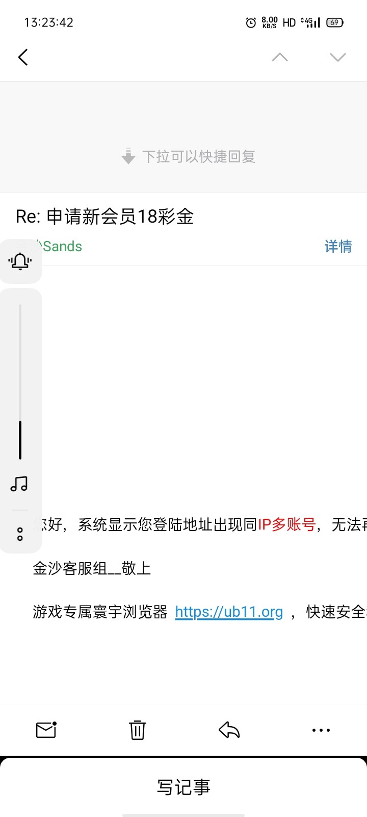 新用户注册绑卡手机号 发送邮件申请18彩金,亲测领到18,具体规则看图了解,不懂问客服