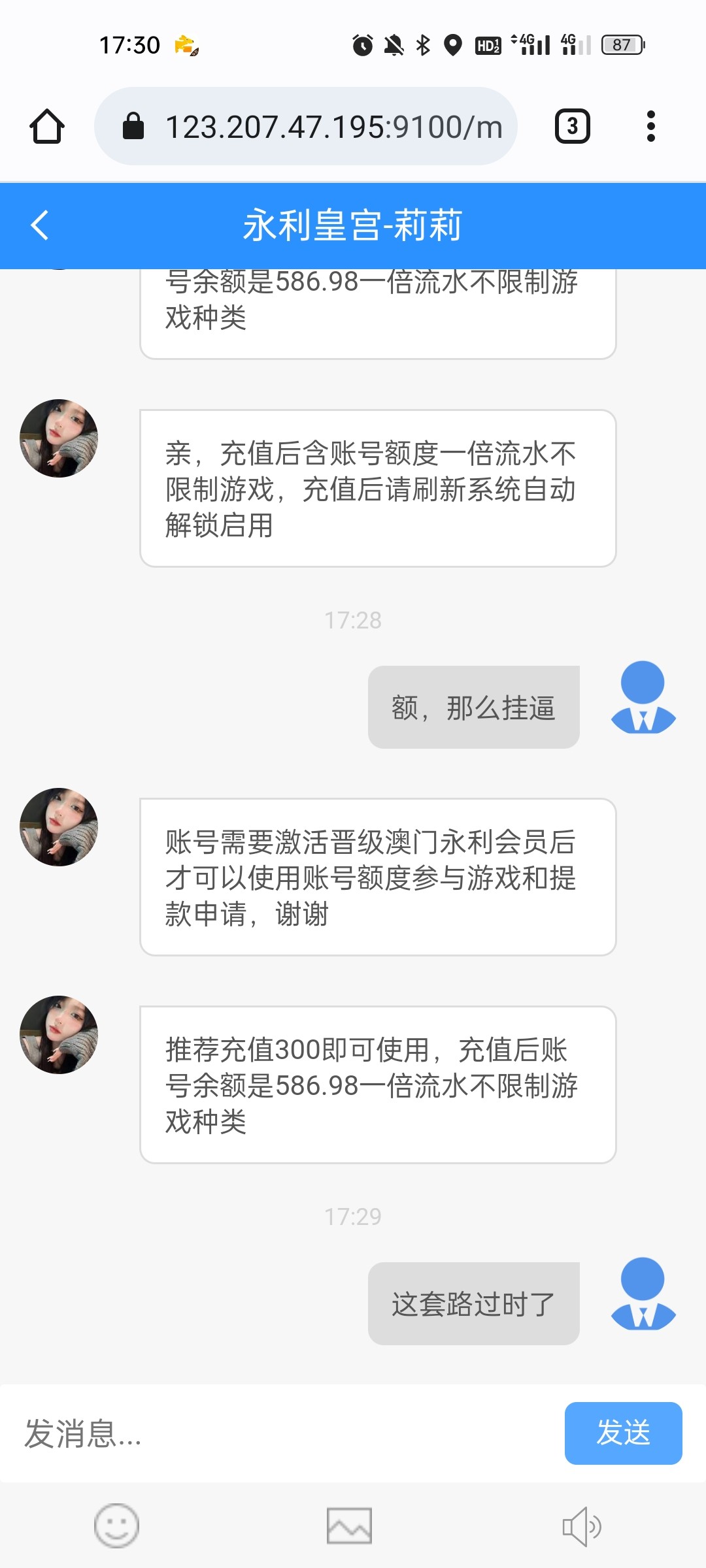 真有经验的老哥告诉你这客服模本两三百块钱搭的,一眼黑