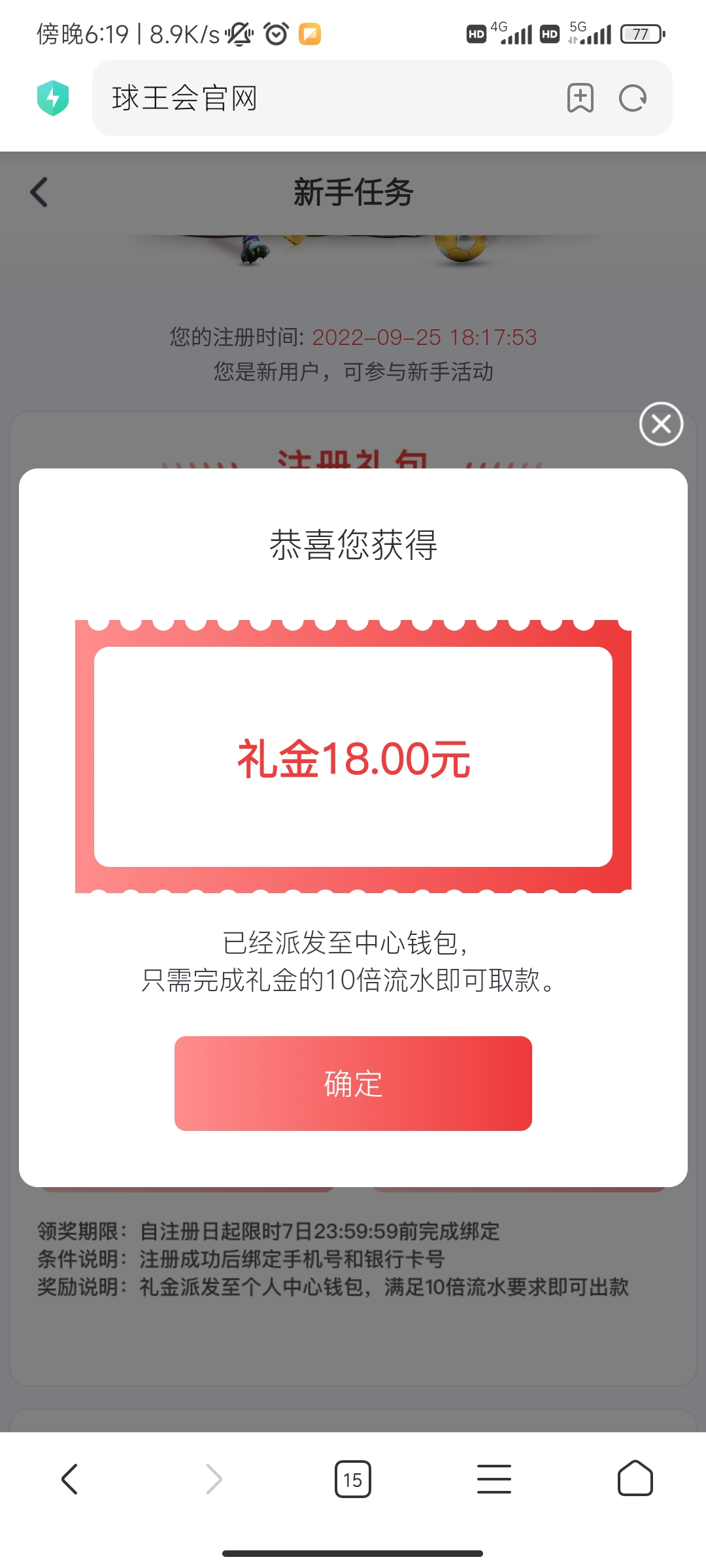 注册送18,绑卡绑手机号,100出,10水,活动申请,秒到账。