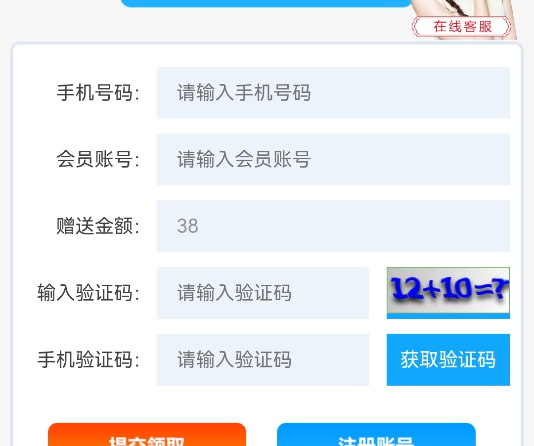 可以先去链接里的自助领取彩金,输入手机号获取验证码,看看能不能收到验证码,能收到说明可以领,之后再注册领取。收不到无视即可。希望老哥多多分享本站,叫上朋友一起撸。